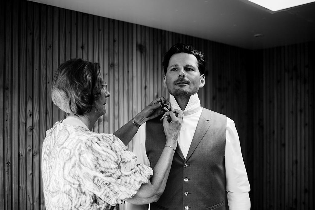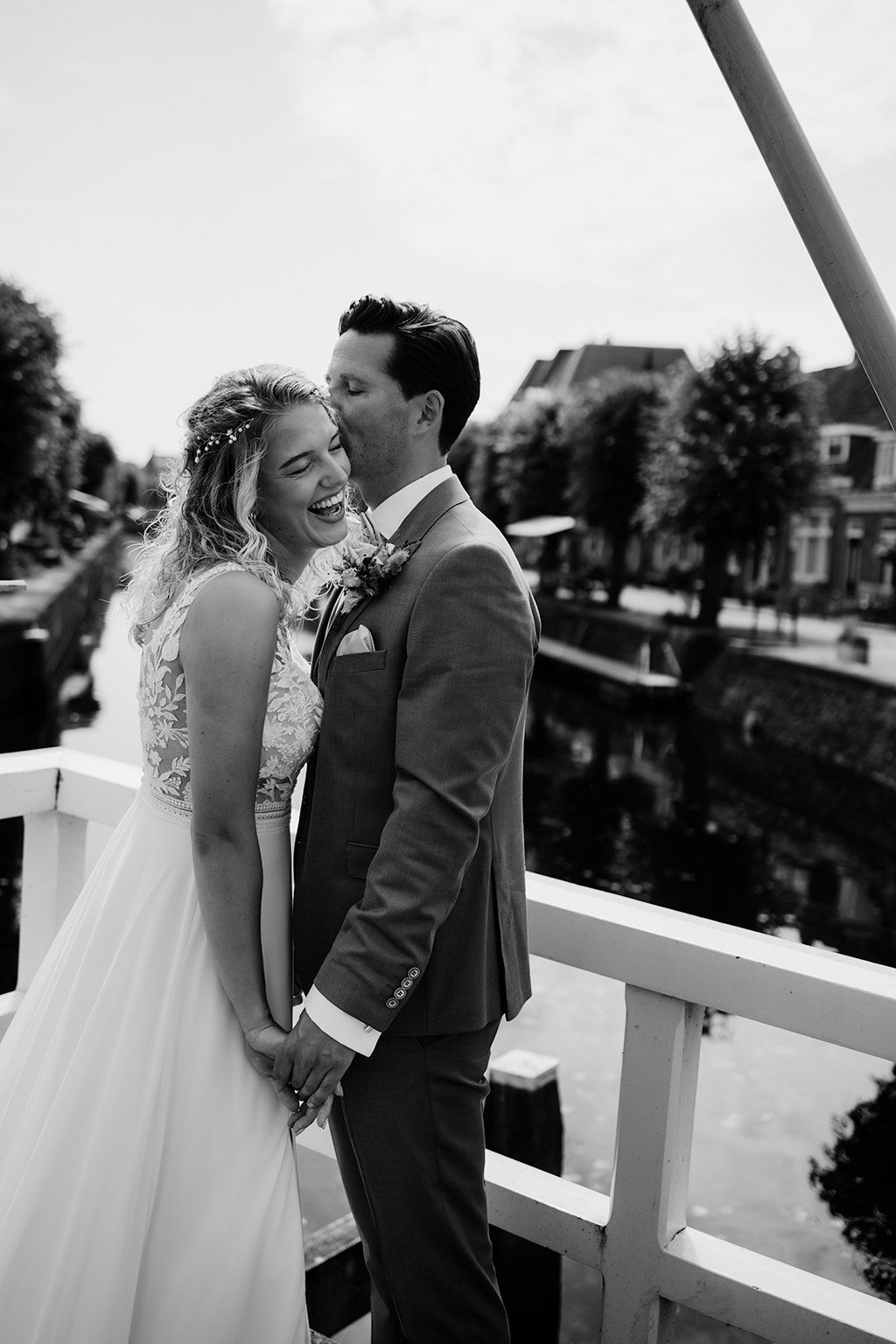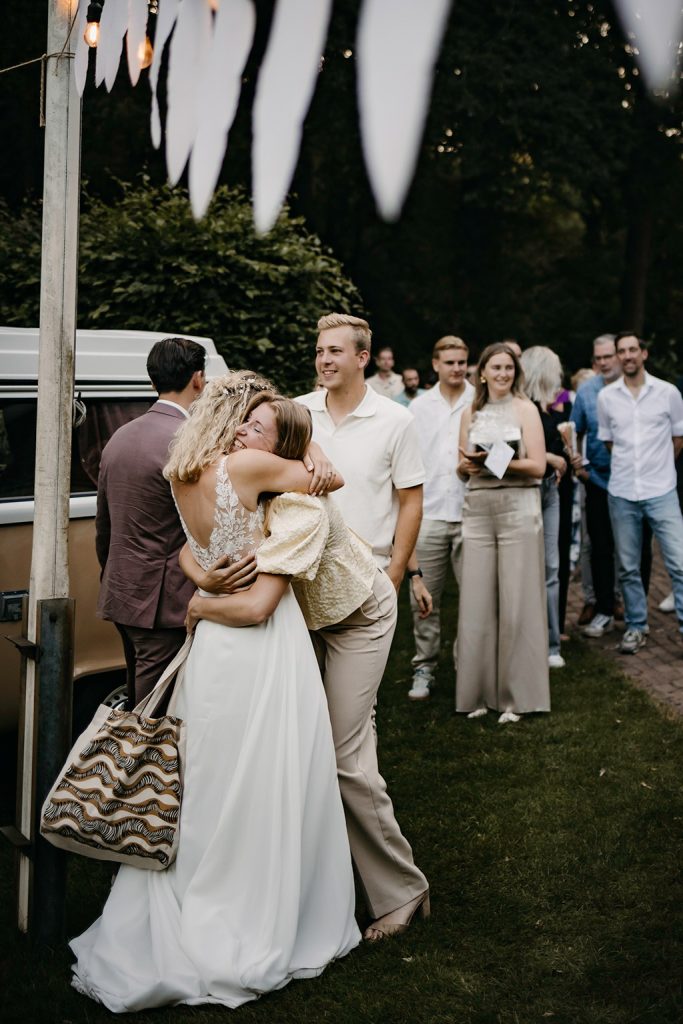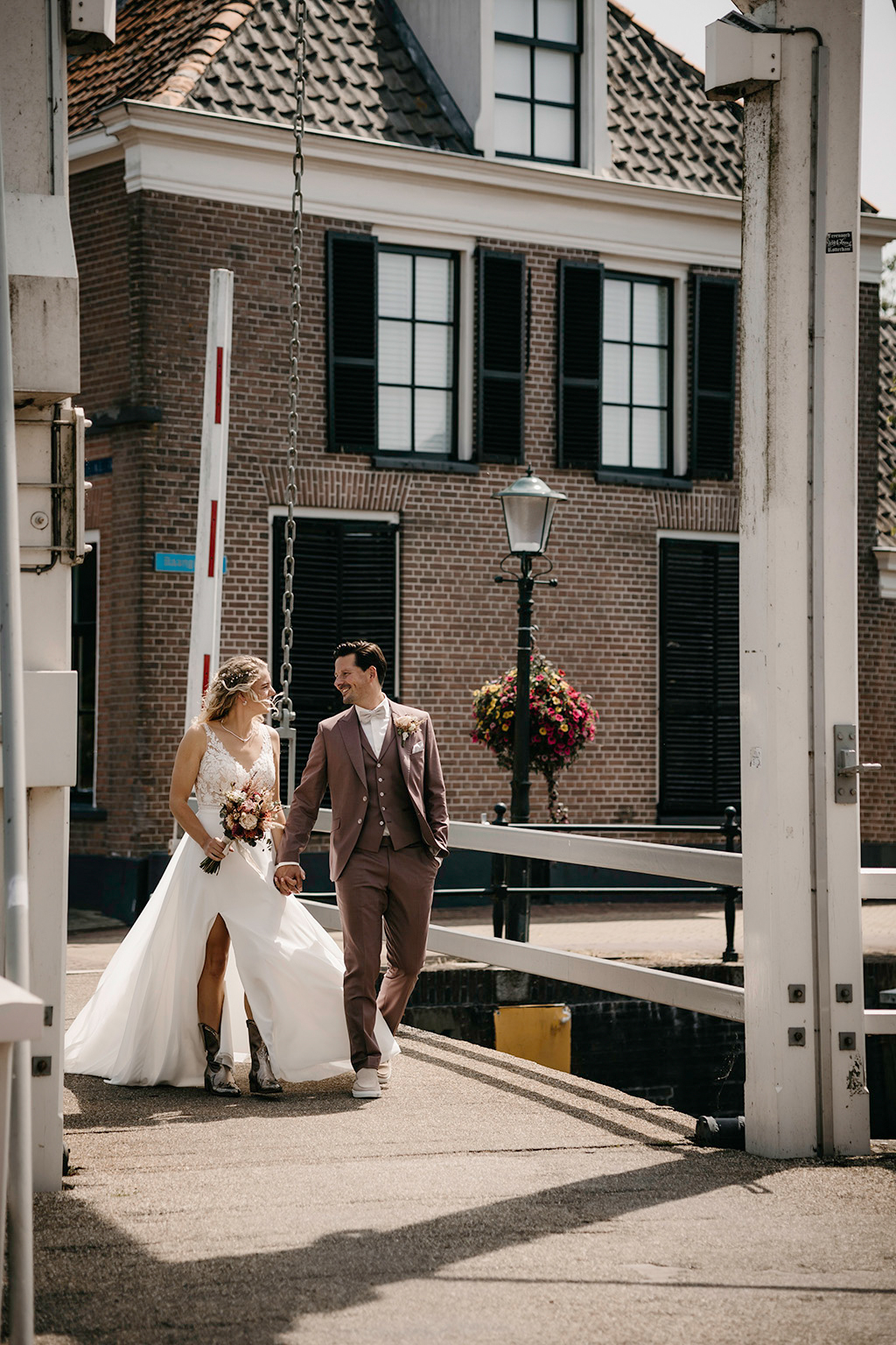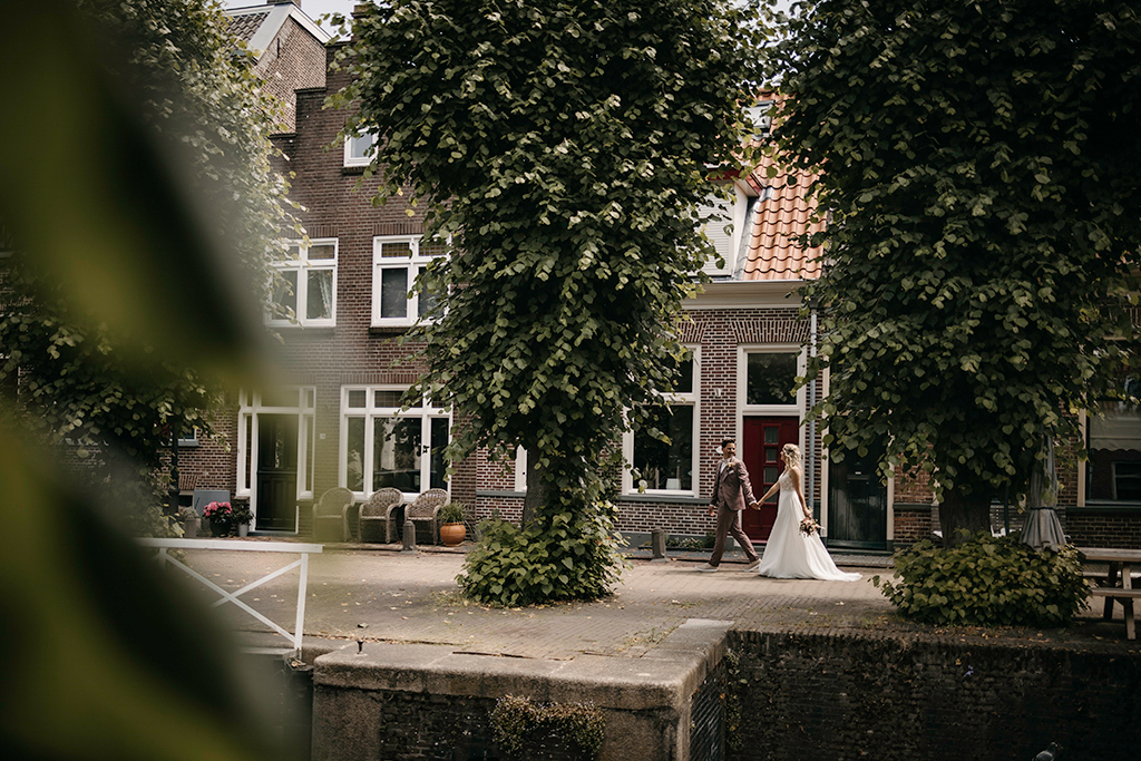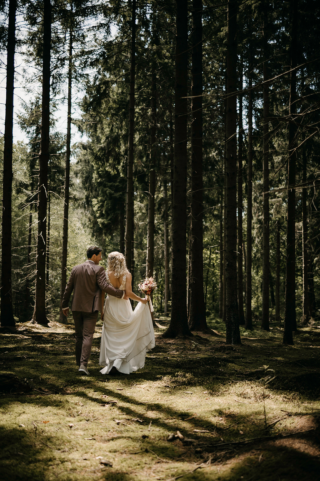 Hasselt was het decor voor de de start van hun dag: first look aan de gracht en foto’s maken op de plekken waar het allemaal ooit begon. Daarna in het camperbusje richting het bos en de trouwlocatie. Het was heet, maar wie zei dat een beetje zon de liefde kan verpesten? Het was een dag die precies bij hen past: relaxed, vrolijk en vol kleine avonturen.