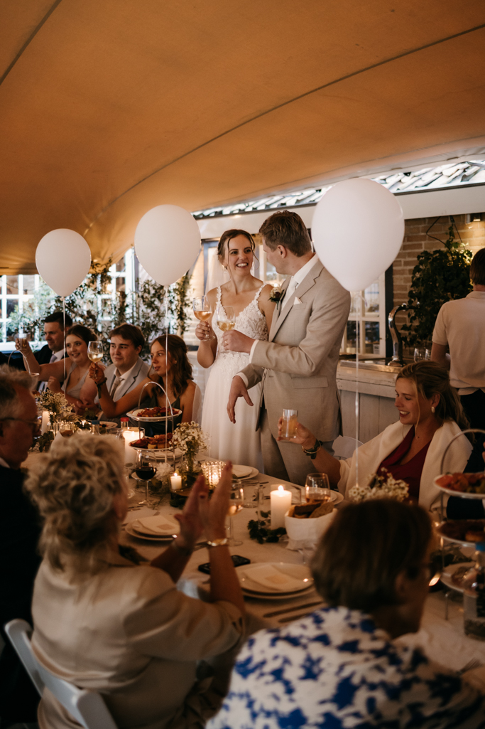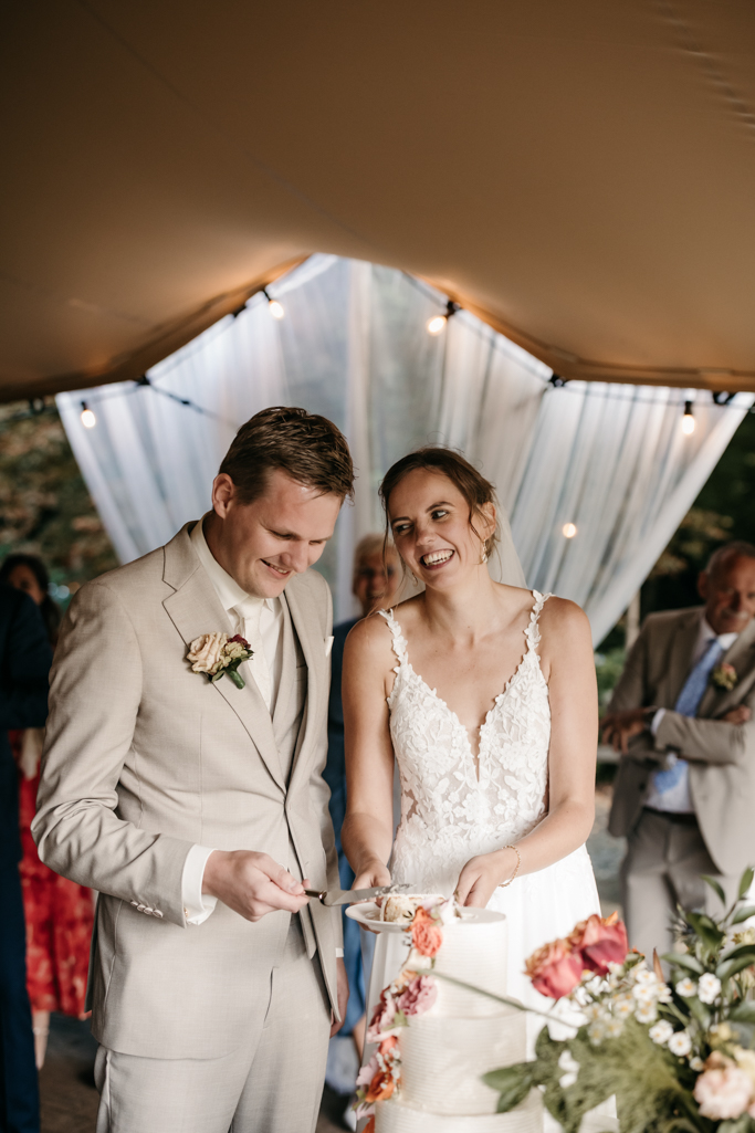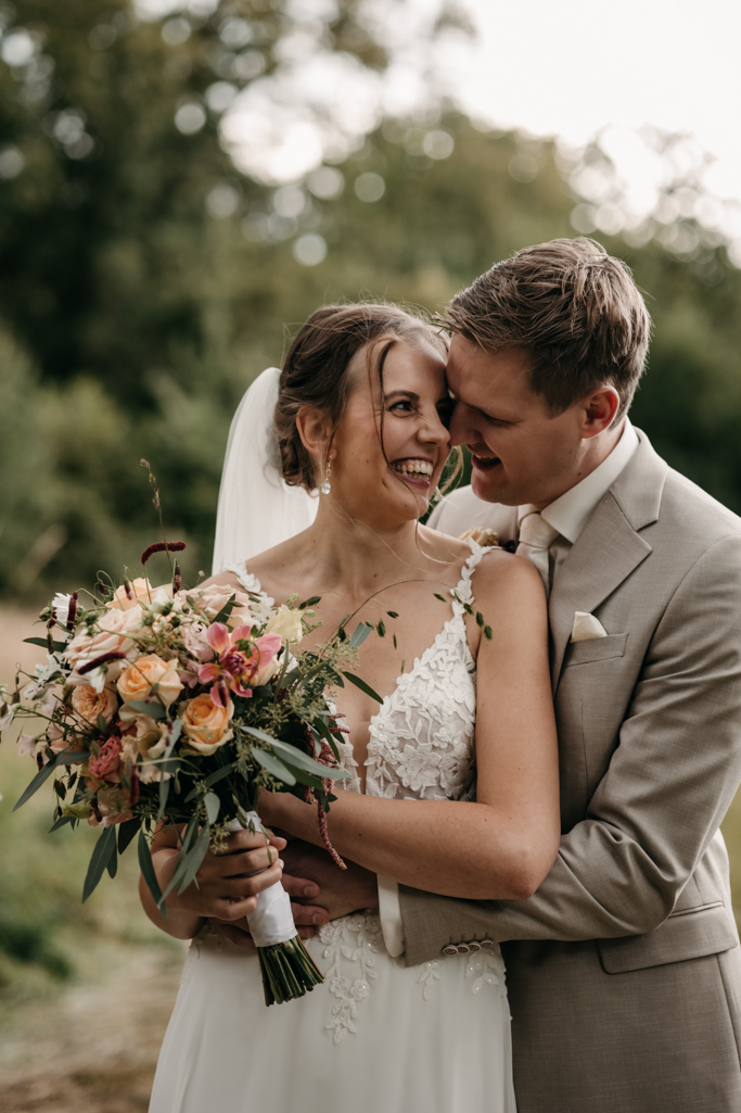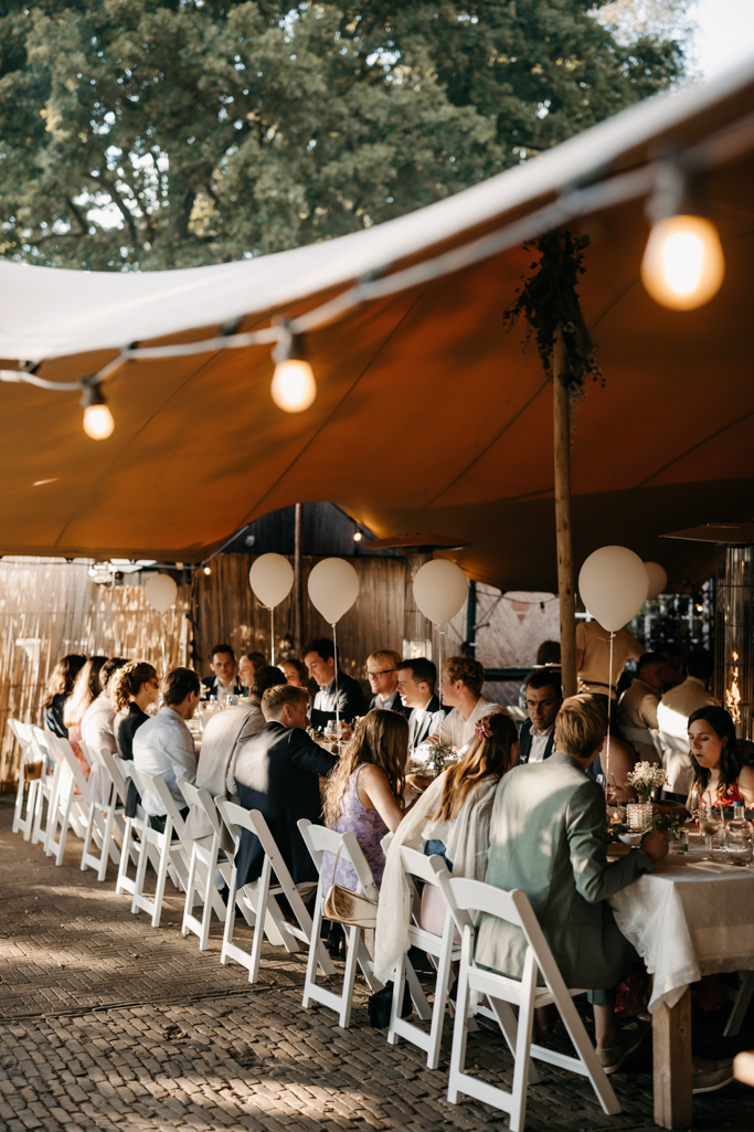 Stefan en Marieke gaven elkaar het jawoord in een romantisch prieeltje aan het water. De zonsondergang zorgde voor het perfecte licht en de sfeer was fantastisch, met alle geliefden dicht om hen heen. Een dag vol warmte, liefde en mooie herinneringen.